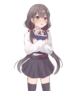 好奇心の強そうな表情に加えて、下に重心のある髪型や両手で抱えた本で真面目そうな雰囲気を演出しています。