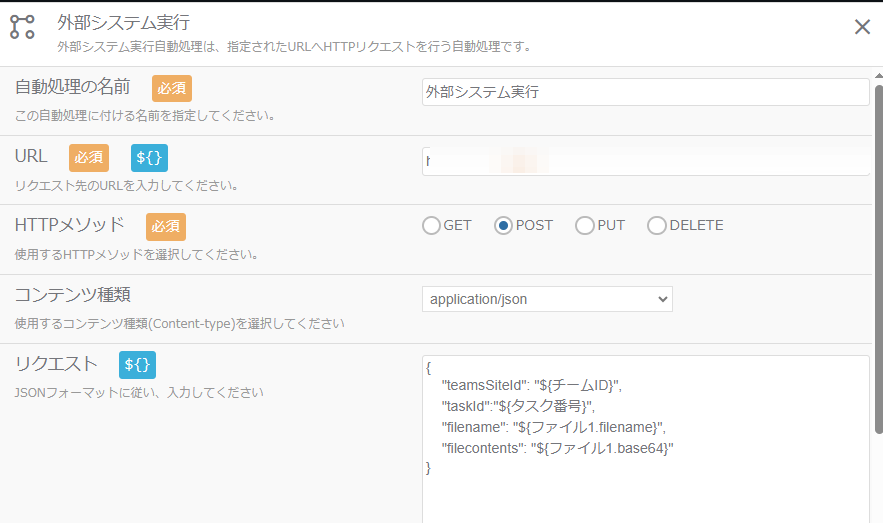 好きな経路とボタンに、「外部システム実行」自動処理を追加します。