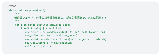 - ABCの偵察蜂: 「解が limit 回改善しなかった」という明確な停滞を検知してから発動する、「治療的」な措置です 。