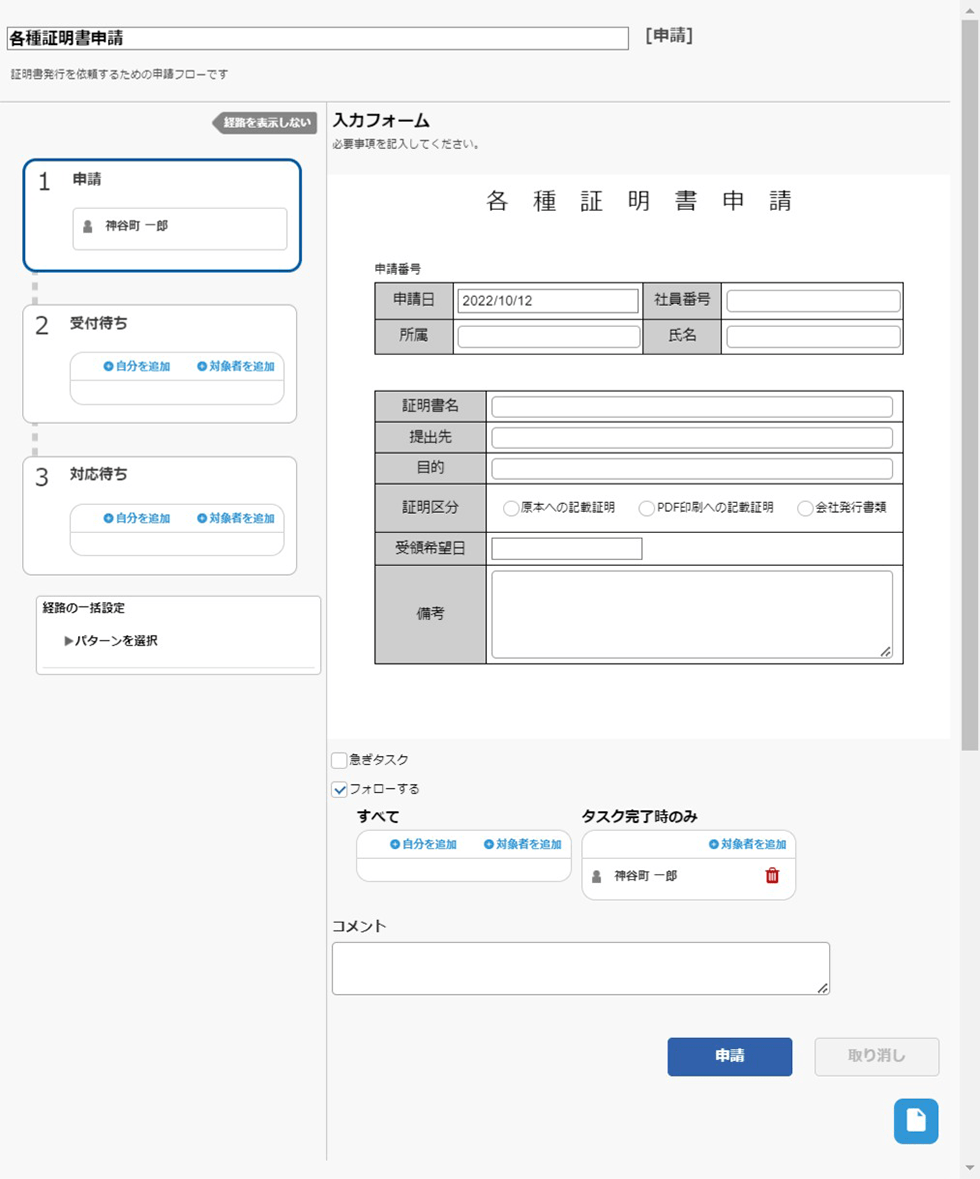 各種証明書申請テンプレート:発行手続きのデジタル化と履歴管理