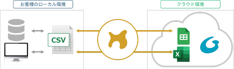 1.基幹システムからお客様のローカル環境に出力されたCSVを自動でクラウド環境にアップ。
