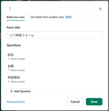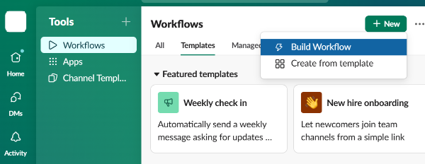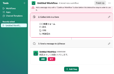 Slackの承認フローは、主にワークフロービルダー機能を使って作成します。これは、特定の操作をきっかけに一連の自動アクションを実行する機能です。
