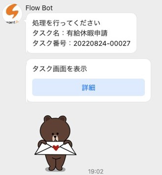 お持ちのスマートフォンにモバイルアプリをインストールすれば、モバイルデバイスでの通知が可能です。承認依頼や完了などの通知をプッシュ通知で受け取れます。通知をタップすれば、タスクの画面に遷移し、ボタンを1回推すだけで承認が完了します。